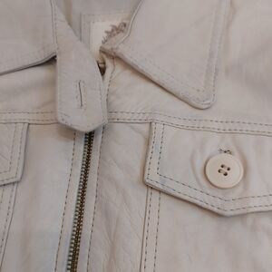 Zara leather jacket , have a lot of wear, some blue marks, button missing, see all photos. fit like size Small, so I guess kids large. armpit to armpit is 17", length is 22, length of sleeve from shoulder is 26".