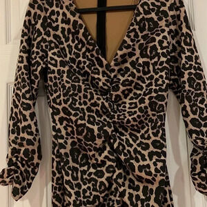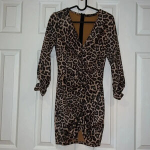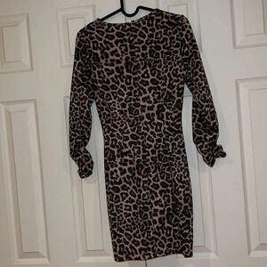 🤎🖤stunning flattering timeless chic Style Zara leopard print rushed detail long sleeve mini dress Hidden zipper Sz S Approx measurements EUC photographed same day shipping from smoke free home