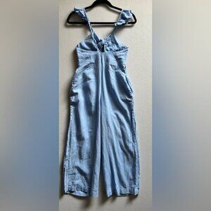 Zara linen blend baby blue tie front cropped pants jumpsuit Sz XS