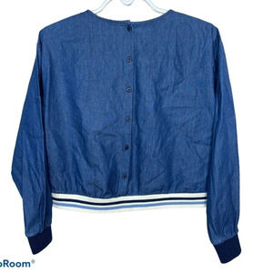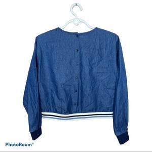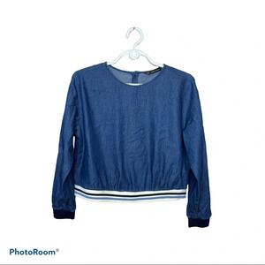 Zara long sleeve blue striped detail jeans top Sz S