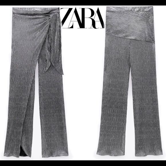 Zara metallic silver liquid foil High waisted wrap slit pants Sz XS NWT bloggers