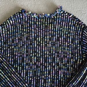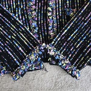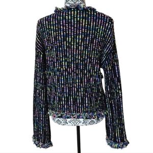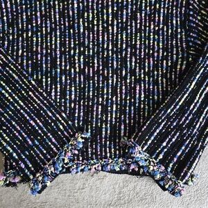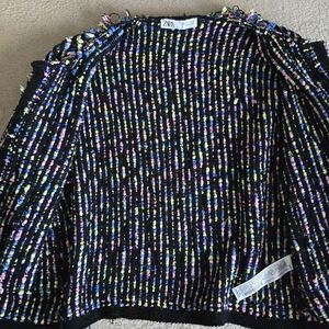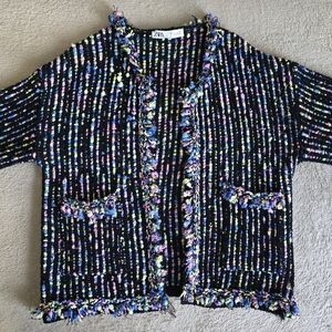 Zara multicolor knit tweed open front fringe cardigan size large