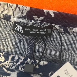 Zara navy blue and white floral jacquard long sleeve mini dress new with tags. Round neckline, long sleeves with ruching, stretchy poly, viscose and elastane blend fabric that feels thick and luxurious, unlined. Marked size US S but fits oversized in my opinion, please see measurements (I usually wear size L in Zara dresses, but this was fits perfectly in size S. It also has lots of stretch). All measurements are approximate and taken with the garment laying flat: Armpit to armpit 20’’ Total length 32’’. This item comes from a smoke free, pets friendly home. Recycled bags/box used when possible. Please, let me now if you'd like any additional pictures and/or measurements or other info. Thanks for looking!