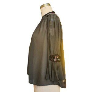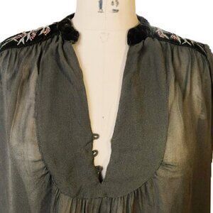 Zara olive brown velvet, embroidery and beads tunic top