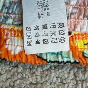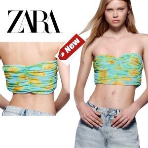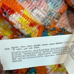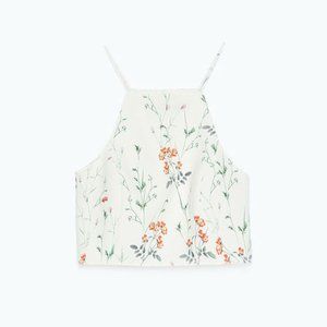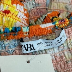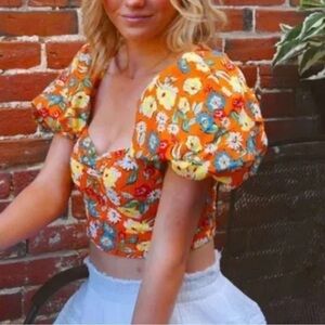 Zara orange floral flower smocked puff sleeve sweetheart neckline crop top L NWT