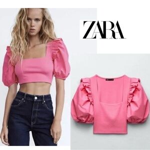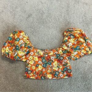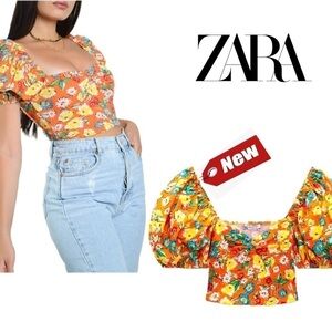 Effortlessly Embrace Flower Power in Our Zara Orange Floral Puff Sleeve Crop Top