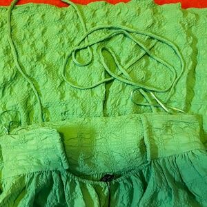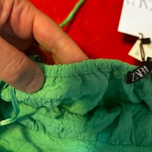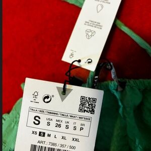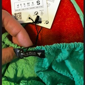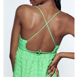 Zara oversized green textured tiered midi sun dress new with tags. Straight neck, spaghetti straps that adjust in back, tiered skirt, unlined. Perfect for traveling because it’s lightweight and doesn’t wrinkle. Marked size S but it fits very oversize, please see measurements (I’m usually a size L in Zara dresses and this fits well). All measurements are approximate and taken with the garment laying flat: Armpit to armpit 15" (it stretches up to 19’’) Total length 42" (from the middle of chest). This item comes from a smoke free, pets friendly home. Recycled bags/box used when possible. Please, let me know if you'd like any additional info. Thanks for watching!