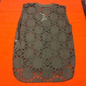 Zara oversized khaki openwork embroidered sleeveless top NWT