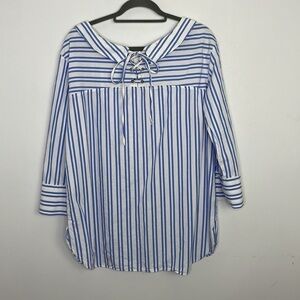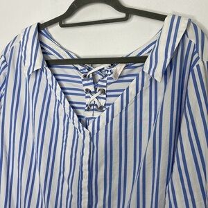 Zara oversized stripes lace back blouse