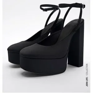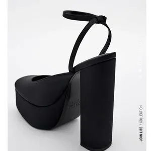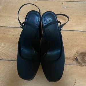 Zara black satin finish platform, size 38 fits a true size 8, worn a few time, no damage, minimal wear, excellent condition