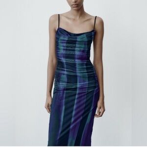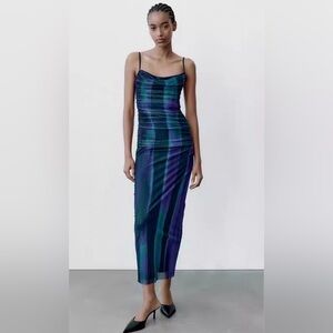 Zara print blues dress with tulle Size XS