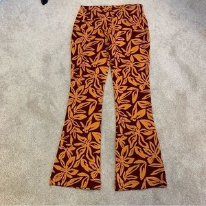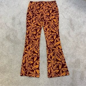 Zara red orange flared floral tropical Jacquard stretchy pants Sz L