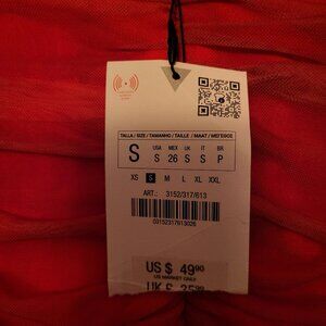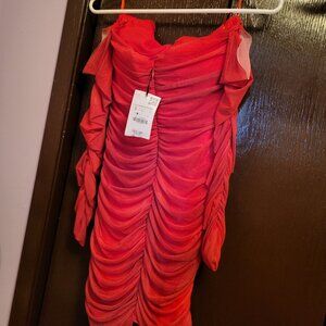 Zara gradient red ruched dress. New with tags. The wiring in the boob area is getting close to poking through (image 5) because of the thin material so marking at a low price. I didn't notice when I bought it and I don't have a Zara near me so I didn't bother trying to return it.