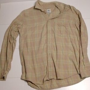 Zara relaxed fit brown green cotton soft button down plaid shirt woman large