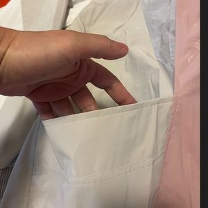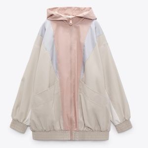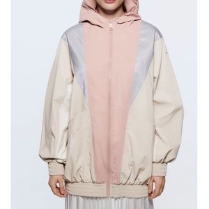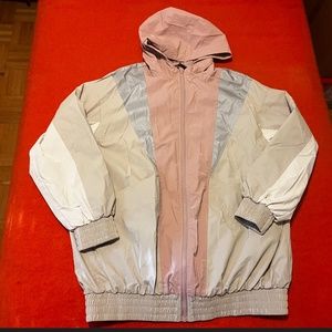 Zara retro pastel pink, off white and blue rubberized hooded jacket EUC