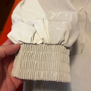 Zara pastel pink, off white and blue rubberized hooded jacket in excellent used condition (as new). High neck, hood, long sleeves with elasticated cuffs, huge front pockets, elastic trims, zip fastening at the front, water repellent, oversized loose fit. It doesn’t get more 80s than this jacket! Marked size M. All measurements are approximate and taken with the garment laying flat. Armpit to armpit 24.5" Total length 30’’ This item comes from a smoke free, pets friendly home. Recycled bags/box used when possible. Please, let me know if you'd like any additional pictures and/or measurements or other info. Thanks for watching!