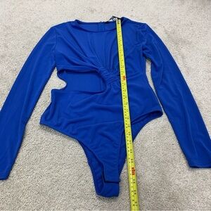 Zara royal cobalt blue knotted cutout bodysuit Sz S NWT