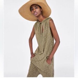 Zara sage green stretchy knit jumpsuit size large
