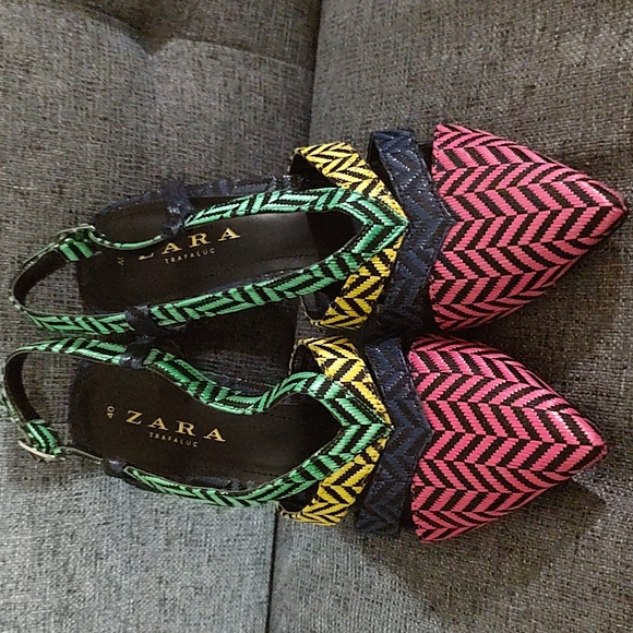Worn once,very nice addition to black,pink ,yellow and green outfits. 6 inch heels.