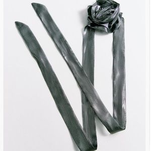 Zara silver silk blend floral scarf new with tags. Shiny silvery thin strap with a gorgeous flower applique, super trendy this year. Very versatile, it can be worn as a scarf, a belt, a bag accessory, etc. and it could make an exquisite elegant gift as well, Mob wife vibes. 67% silk (mulberry) and 33% metallized fibre. This item comes from a smoke free, pets friendly home. Recycled bags/box used when possible. Thanks for watching!
