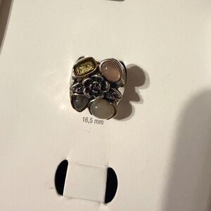 Zara silver textured metal ring with inset colored resin stones NWT