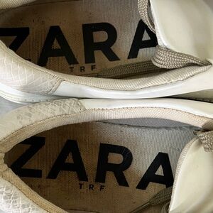 AI description: Stylish Zara sneakers with a textured beige design. Perfect for casual wear.