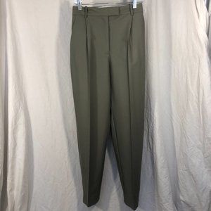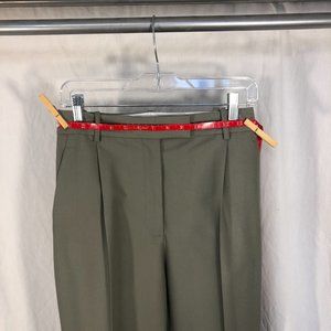 High-waist trousers with front darts. Featuring front pockets and rear false welt pockets. Wide-leg design. Front zip fly, inner button and metal hook.