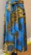 Vibrant blue and yellow fabric with intricate patterns. Features floral and paisley designs.