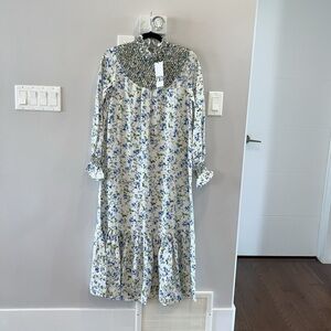 Zara smocked embroidered Floral Blue and White Maxi Dress