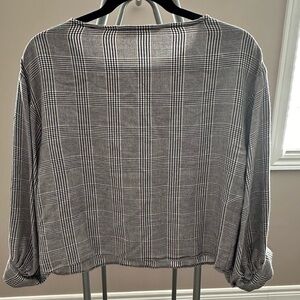 Zara striped grey and black shirt (green and navy ribbon detail on arms). Size M