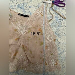 Zara tie dye embroidered lace trim camisole tank top, cream pink size Medium