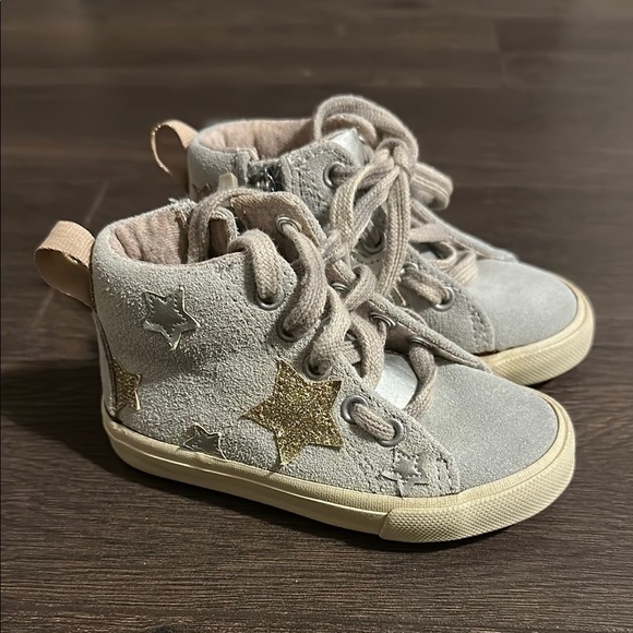 Zara suede high top toddler sneaker size 20 , (12cm) Star details Side zips Used condition