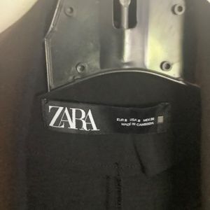 Zara long vest midi in length….black really great condition a good addition to wear over pants or dresses comes with black belt size small