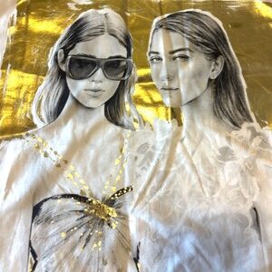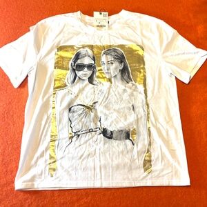 Zara white and golden girls short sleeve t-shirt new with tags. Short sleeves, round neck, contrast print and metallic appliqué at front, 100% cotton. Colour is accurate in the stock photos, mine are taken in artificial light. Marked size S Small, but fits larger in my opinion, please see pictures for measurements. This item comes from a smoke free, pets friendly home. Recycled bags/box used when possible. Please, let me know if you'd like any additional info. Thanks for watching!