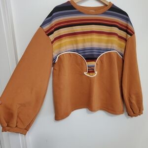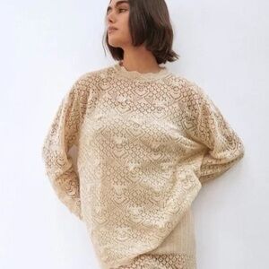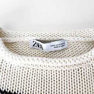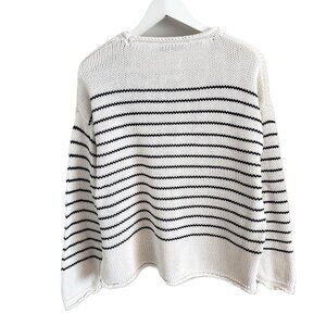 Zara creamy white striped crewneck sweater with rolled hems in women's size M