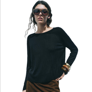 Boxy cut, chunky knit, side seam split, the stripes are black, slightly cropped length