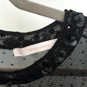This sheer dress is well made with details at the collar area and the bottom of the skirt.