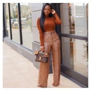 Zara women NWT long light brown/tan sequin pants. Ref: 7901/265 size: medium