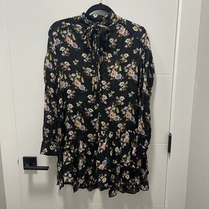 Women’s zara black dress with floral detailing. V neck with a tie top. Long sleeve with buttons at the end of the sleeves. Worn three times.