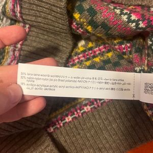 Zara rustic multicolored whimsical wool blend jacquard V-neck vest new with tags. Warm and comfortable, soft 50% wool blend knit. Marked sized L/XL but it fits smaller in my opinion, please see measurements. All measurements are approximate and taken with the garment laying flat: Armpit to armpit 20.5’’ Total length 27.5" This item comes from a smoke free, pets friendly home. Recycled bags/box used when possible. Please, let me know if you'd like any additional pictures and/or measurements or other info. Thanks for watching!