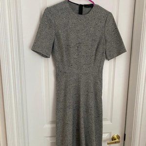 XS Zara crew neck, short sleeves, flared skirt and back zip closure. Color is speckled gray. Very flattering