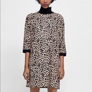 Zara-Animal Print Mock Neck Shift Mini Dress