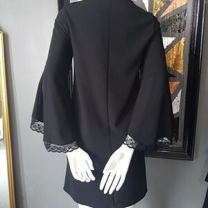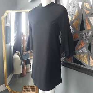 gorgeous and boho chic lbd from Zara. this has never been worn. high neckline with shoulder button closure. fluted bell sleeves with lace cuff. a line design. excellent condition! size xs. see measurements!