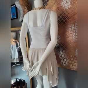 Stylish sleeveless dress in white and cream from Zara. Features a layered ruffled skirt design and a stretchy ribbed shirt portion. Only worn once, no flaws to note. Cotton blend, see pics for material composition! lightweight and breathable. Flattering fit and flare silhouette. This is labeled size medium but I feel it fits truer to a small so I will be listing it as such! See flat lay measurements below!