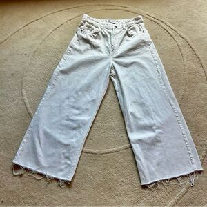 Elevate your style with these chic wide-leg white jeans. Perfect for any occasion, they offer a modern and sophisticated look. Distressed hem. Perfect condition.