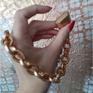 Stylish gold and silver chain necklace from Zara featuring a bold padlock design. Perfect for adding a statement to any outfit. Brushed metal with multiple chunky 2 tone chains. adjustable with lobster clasp closure.