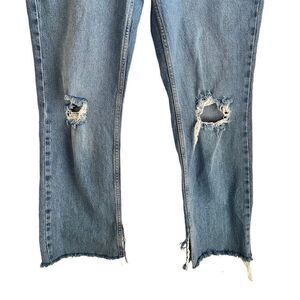 Zara High Rise Straight Leg Split Seam Distressed Light Wash Jeans Size 12