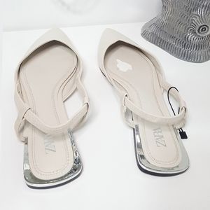 🔖Zara💋Ivory V-Cut Front Slingback Pointed Ballet Flat