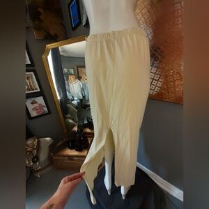 This elegant pale butter yellow 100% cotton maxi skirt offers a timeless look for any occasion. Its soft fabric and classic design make it a versatile addition to your wardrobe. Elastic waist with back slit detail. line silhouette and is a stretch cotton sweatshirt material. Size medium, but has stretch. Very classic causal staple! See flat lay measurements below! Nwt, never worn, no flaws to note!