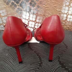 Step out in style with these elegant red strappy heels from Zara. On trend Fisherman style with goldtone double side buckle. Perfect for any occasion, these shoes offer both comfort and sophistication. Perfect condition, never worn or tried on. Faux leather with cushion insole. size 6.5 or European 37. Heel height is 3". Rounded almond toe. Deep true red in colour, very retro inspired! Will come with Zara dustbag as well!